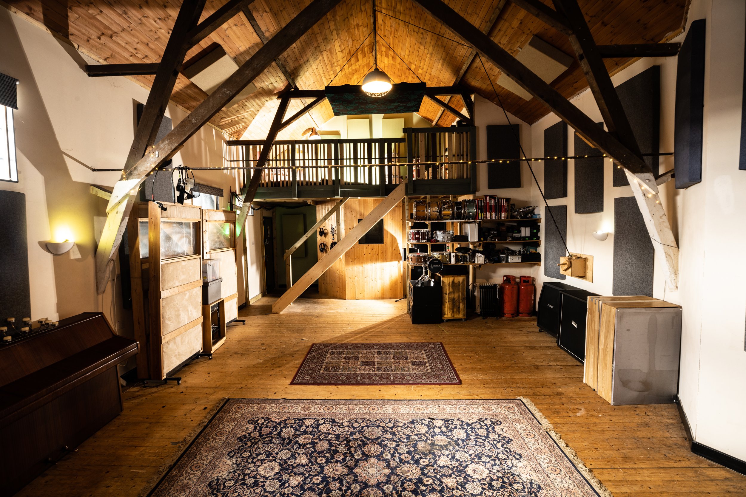 Its floating hardwood floor, splayed walls, and wooden ceiling create a lively yet balanced sound, perfectly suited to big drum tones.